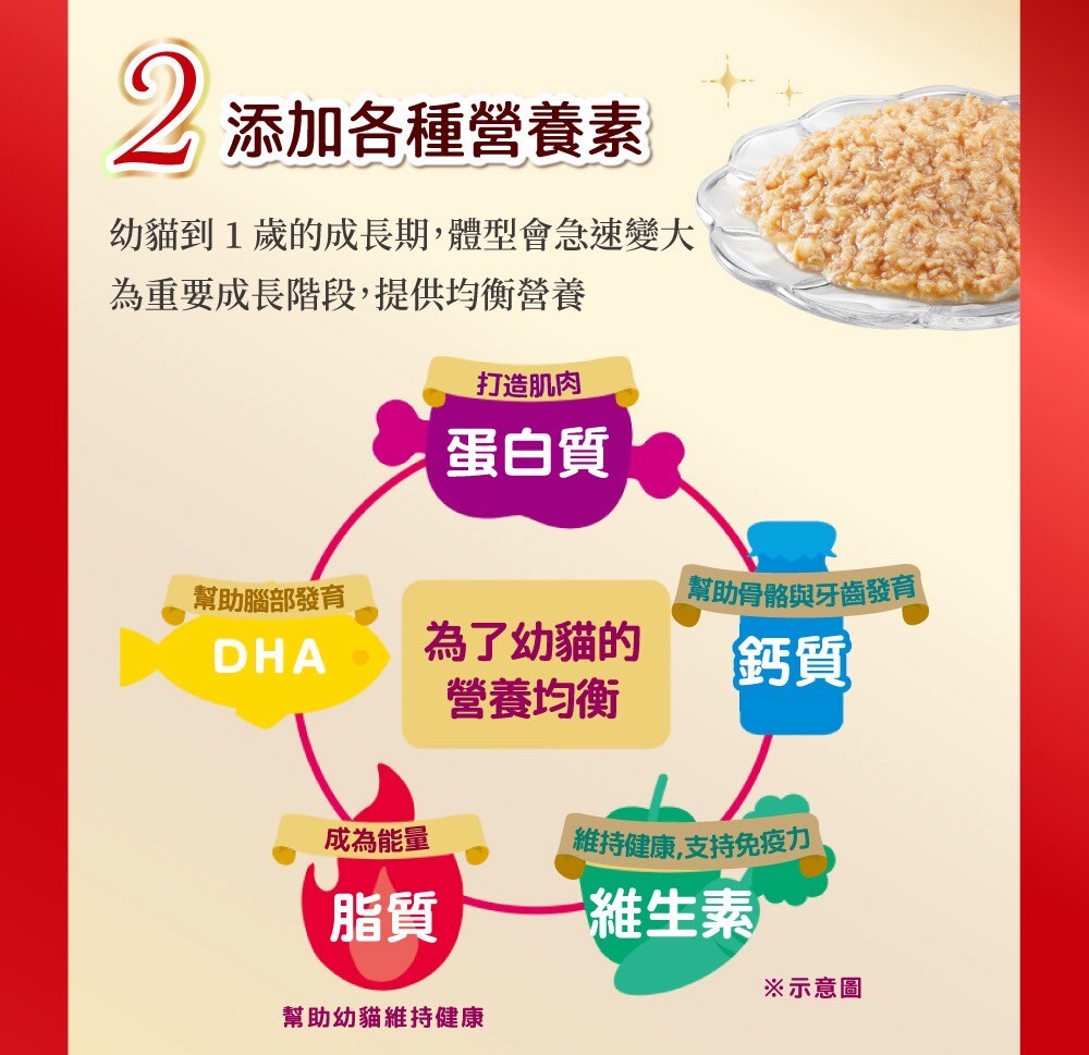 添加各種營養素,營養均衡設計適合 12 個月以下的小貓,讓您的小貓健康成長